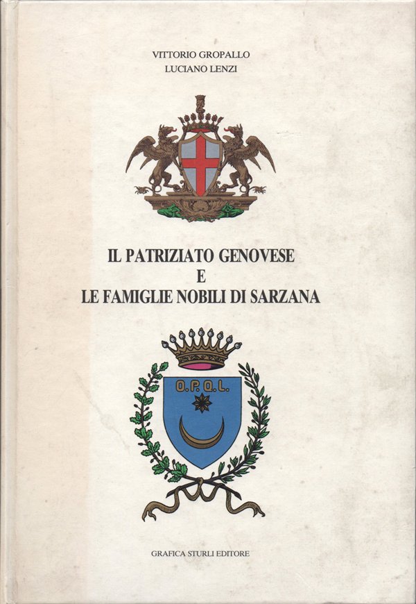 In-8° (27,6 x 18,6 cm), pp. 166, (2), legatura editoriale. Qualche normale, lieve traccia d'uso e del tempo alla legatura, in particolare, leggera ingiallitura al dorso e a parte del piatto anteriore. Con numerose tavole a piena pagina, in bianco e nero, nel testo. Al recto della guardia anteriore, invio autografo, firmato, di Vittorio Gropallo, datato "27-XI-92". Per il resto, ben conservato. Indice: Studio introduttivo I. Vittorio Gropallo, Il patriziato genovese e le famiglie nobili di Sarzana dalla riedizione delle tavole d'arte di A. Fransone del 1636. Liste settecentesche de: Doge, Governatori, Procuratori, Minor Consiglio, Gran Consiglio, Patrizi in genere. Studio introduttivo II. Luciano Lenzi, Gli «Alberghi» dei Nobili Genovesi nell'ideazione di Andrea Doria e nelle illustrazioni del Nobile Agostino Fransone. Testo dell'Opera: Nobiltà di Genova, di Agostino Fransone del fu Tommaso Nobile Genovese (Tavole). Elenco delle Famiglie Nobili di Sarzana.