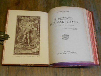 Peso di spedizione : 700 g (Adriaan Beverland - Teoria sulla natura sessuale del Peccato Originale - Filosofia - Storia - Religione - Teologia - Letteratura - Arte - Scienze - Storia delle idee) In 8°, legatura muta coeva in mezza pelle color ocra chiaro con ampie punte, carta decorata bicroma ai piatti, tagli rossi, pp. (2),IX,(1),200,(2), con 19 tavole su carta patinata fuori testo di cui una in antiporta raffigurante il frontespizio della sesta edizione francese (Dans le Monde, 1741) dell'opera di Beverland ("De l'Etat de l'homme dans le Péché Originel"). Prima edizione, tiratura di 900 esemplari numerati, stampati su carta vergata (es n. 14). Ottimo stato. Peso di spedizione : 700 g
