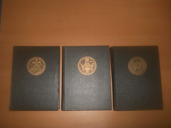 Istituto Italiano d'Arti Grafiche prima edizione 1960, 3 Voll. - senza cofanetto, copertine rigide, formato cm 19 x 26, 1° vol: strappo tra dorso e retro di copertina, pag. 533, 2° vol: segni tempo sul dorso, pag. 614, 3° vol: piccolo strappo tra dorso e copertina