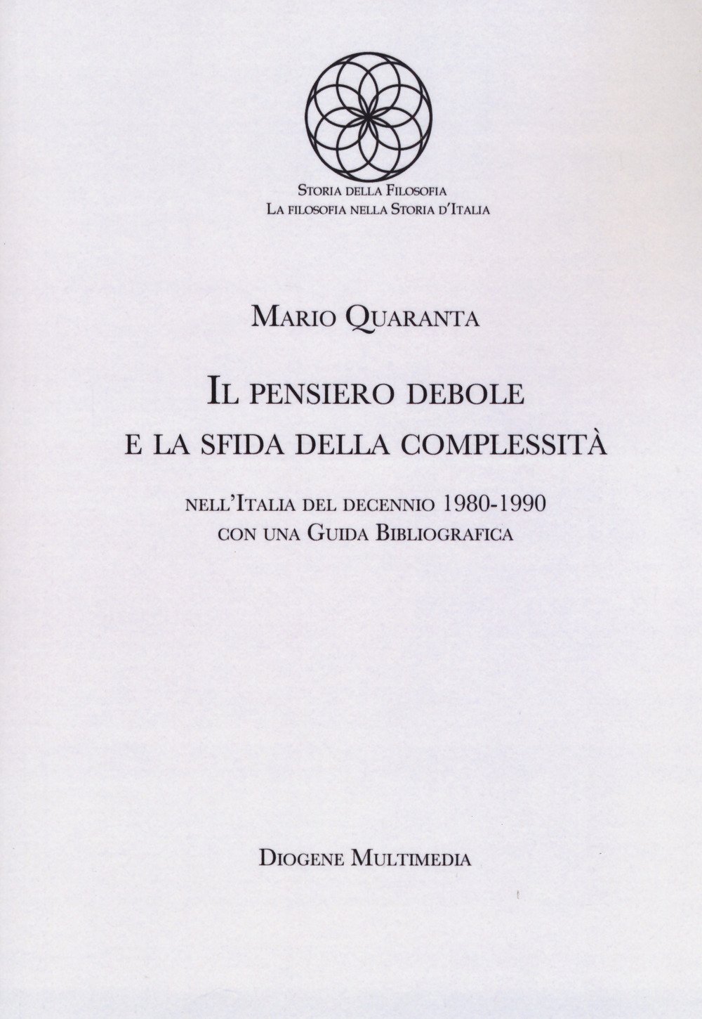 Il "pensiero debole" e la "sfida della complessità" sono stati, per un decennio, due orientamenti al centro di un appassionato dibattito nella cultura italiana; essi ritengono di essere il punto d'arrivo di istanze, idee, progetti presenti nella cultura italiana ed europea dei precedenti decenni. La nuova generazione filosofica ha elevato una critica radicale al tradizionale modello di razionalità 'classica', ritenuto inadeguato a cogliere la complessità sociale, antropologica, culturale, che emerge nella nuova fase del mondo che si suole chiamare con il termine 'globalizzazione'. I due orientamenti, pur diversi, sono unificati da un netto rifiuto dei totalitarismi e della pretesa della "ragion classica" di fornire un paradigma di razionalità 'forte', capace di fornire una lettura esauriente del mondo naturale e umano, e perciò di predeterminare i comportamenti individuali e collettivi. Così, attorno alle tematiche nuove di questi due orientamenti, qui evidenziate e discusse, si sono organizzati molti dei risultati raggiunti dalle ricerche e discussioni, ed è maturata la persuasione che una fase culturale si era chiusa ed erano iniziate nuove avventure del pensiero. Con una guida bibliografica.
