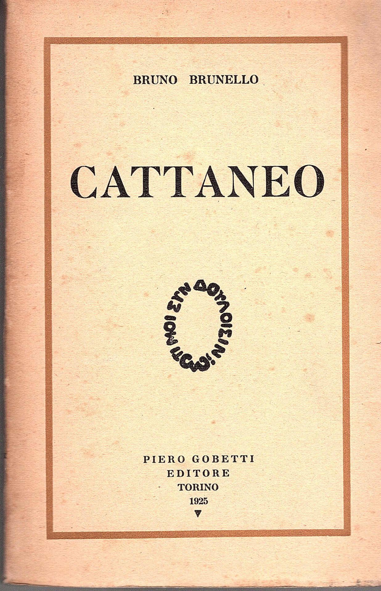 In-16° (19.5x12.5 cm), pp. 216, brossura originale riquadrata con titolo e logo editoriale, disegnato da Casorati, col motto greco disposto circolarmente: 'Ti moi sun douloisin ?', 'Che cosa ho io a che fare con gli schiavi ?', implicito riferimento alla dittatura fascista. Bella copia intonsa. Prima edizione di questo studio sulla vita e il pensiero filosofico, storico ed economico di Cattaneo. Tiratura di 1.000 esemplari. Cfr. Accame Lanzillotta, n. 9.