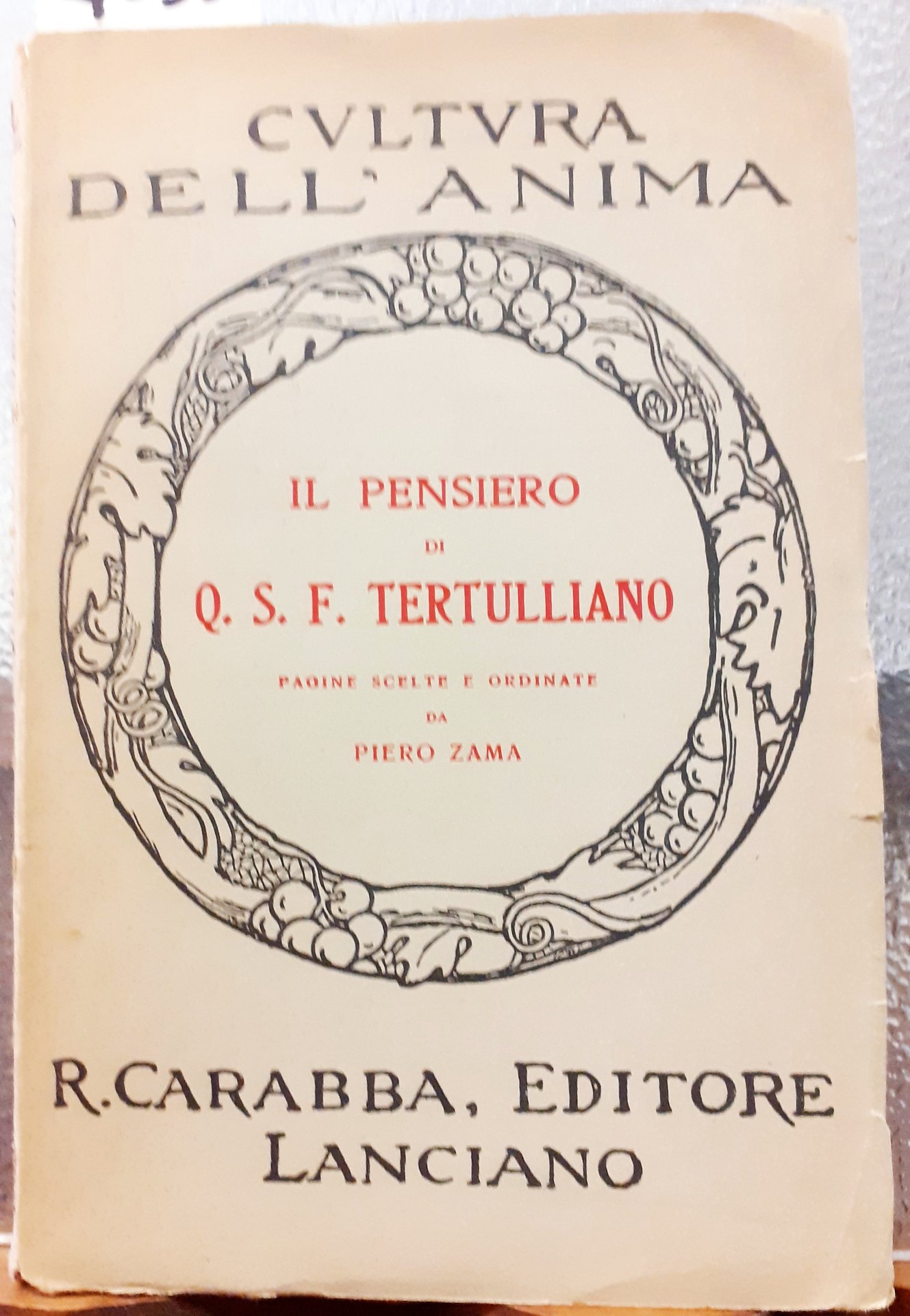 IL PENSIERO DI Q.S.F. TERTULLIANO. PAGINE SCELTE E ORDINATE da PIERO ZAMA.,