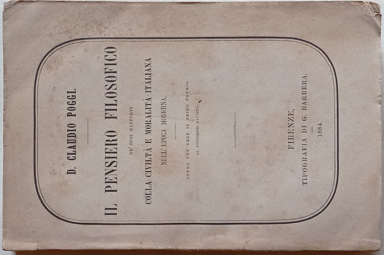 Il pensiero filosofico ne' suoi rapporti colla civiltà e moralità italiana nell'epoca moderna.