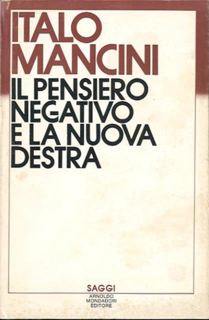 362 p. ; 21 x 14 cm. Saggi. In una vibrante e appassionata polemica che con Nietzsche e Heidegger coinvolge tutto il «pensiero negativo», Mancini non si limita alla semplice critica intellettuale di una diffusa tendenza filosofica; ma si spinge - quasi al limite della provocazione - a ritrovare in essa la giustificazione ultima delle «utopia archeologiche» che i teorici della vecchia e «nuova» Destra vengono via via costruendo in bilico tra «arido scientismo» e fanatici appelli alla Tradizione. Brossura editoriale, coperta colorata in cartoncino flessibile plastificato lucido. Titolo impresso al piatto e al dorso. Qualche segno del tempo alla coperta e ai risvolti della coperta (fioritura e ingiallimento), per il resto esemplare integro. Codice libreria 7760.