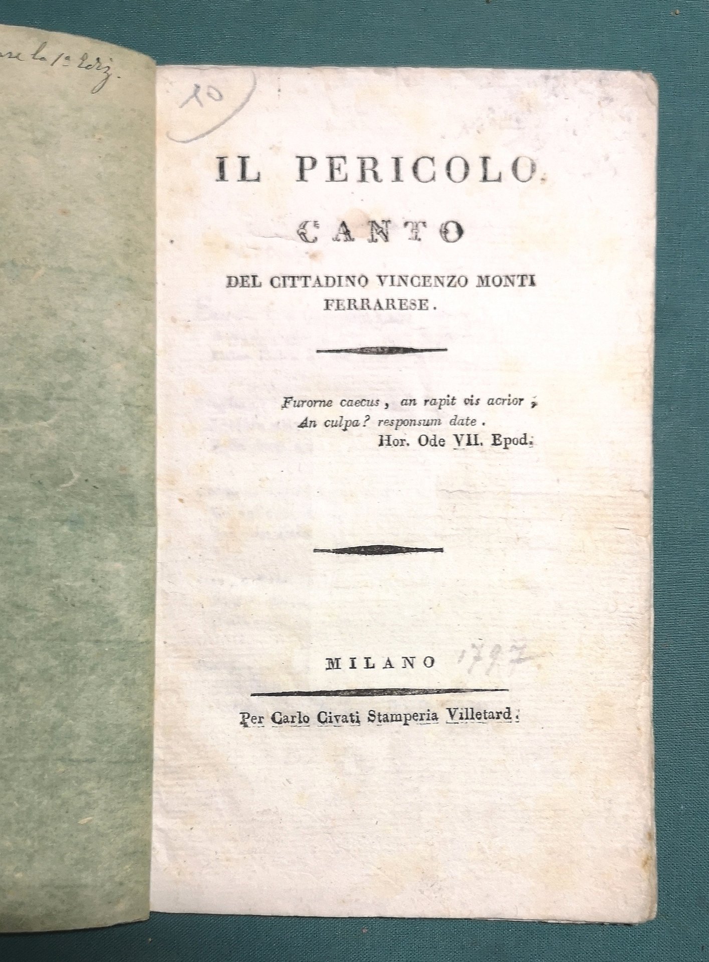 Il Pericolo. Canto del cittadino Vincenzo Monti Ferrarese.