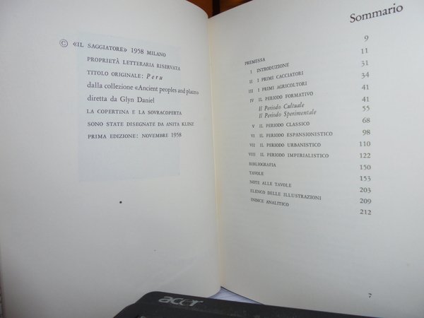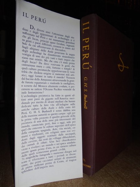 G.H.S. Bushnell. Milano, Il Saggiatore, 1958. Il Perù Precolombiano. In-8° piccolo, tela edit. con sovracopertina. 218 pp. con 71 fotografie, 11 disegni, 1 carta geografica. In ottimo stato di conservazione. Uff. TV. mob. nostro