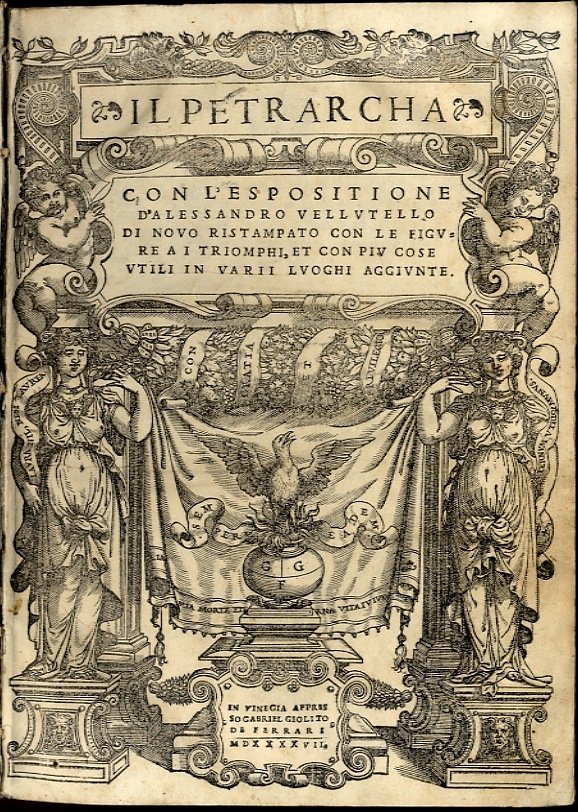 Il Petrarcha con l'espositione d'Alessandro Vellutello. Di nouo ristampato con le Figure a i Triomphi, et con piu cose vtili in varii luoghi aggiunte.
