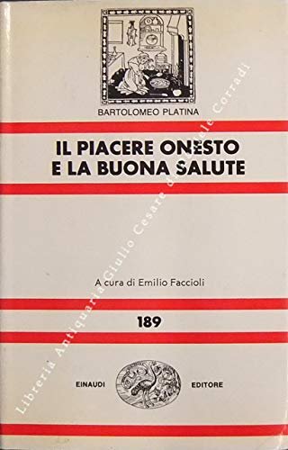 Il piacere onesto e la buona salute. A cura di Emilio Faccioli. , Einaudi 1985 , Edizione Einaudi - Nuova Universale Einaudi n. 189 - del 28 settembre 1985 - in COPERTINA RIGIDA rivestita di sovracoperta illustrata. Sovracoperta leggermente ingiallita , con lievi aloni più scuri causati dalla polvere e con qualche lieve usura in qualche spigolo ma nel complesso ben conservata. Pagine all'interno leggermente imbrunite fattore tempo ma volume in buone condizioni. Disponibilità immediata e spedizione con corriere tracciata.