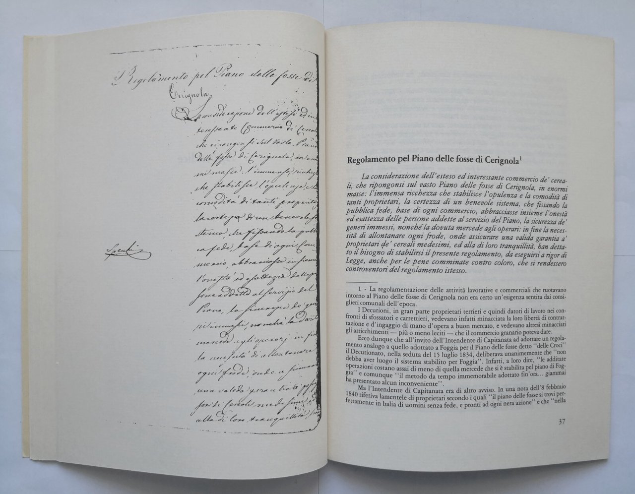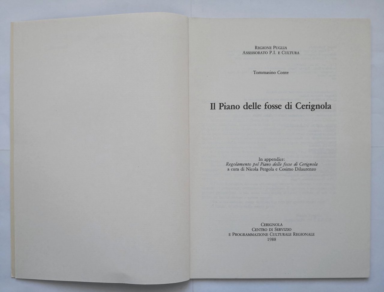 IL PIANO DELLE FOSSE DI CERIGNOLA di Tomassino Conte 1988 libro storia locale
