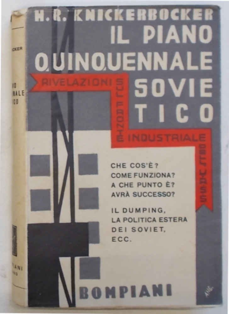 In 8° (cm. 21,5 x 14); pagg. 276, (2); leggera carton. origin. e bella sovracopertina a più colori di Angoletta. VG. ** Terza edizione. Che cos'è? Come funziona? A che punto è? Avrà successo? Il dumping, la politica estera dei Soviet, ecc. "Il Knickerbocker -americano- non ha, come è noto, eguale in questo genere di inchieste"