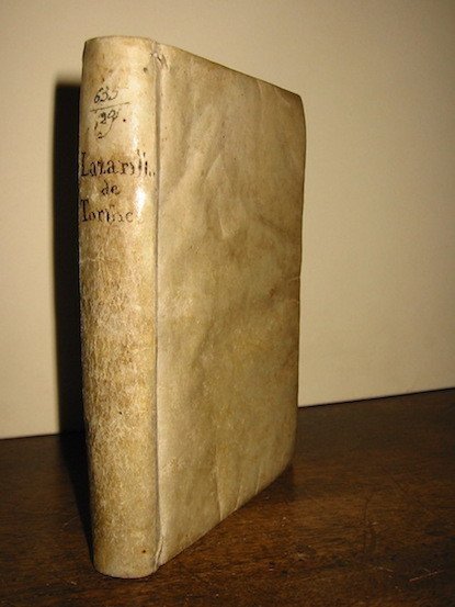 8vo (cm. 14,8), 20 cc., 263 pp. Marca tipografica al frontespizio e al colophon. Capilettera e fregi xilografici. Legatura settecentesca in pergamena floscia con titolo manoscritto al dorso. Antica firma e timbro di biblioteca estinta al frontespizio. Esemplare in buono stato di conservazione ma rifilato soprattutto nelle prime carte non numerate e con tagli al margine laterale esterno di circa 10 pagine che ledono i titoletti stampati lateralmente al testo e, in qualche caso, alcune lettere del testo medesimo. L’ultima carta è sciolta e con piccola piega finale. Seconda rara impressione della prima traduzione italiana. (la prima è del 1621). Palau IV, p. 78 (con collazione identica alla nostra).
