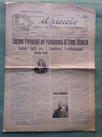 In folio, pp. 4. Piega centrale. Numero incentrato sulle elezioni provinciali, invito al voto per i candidati Antonio Marzi e Emilio Barbensi.