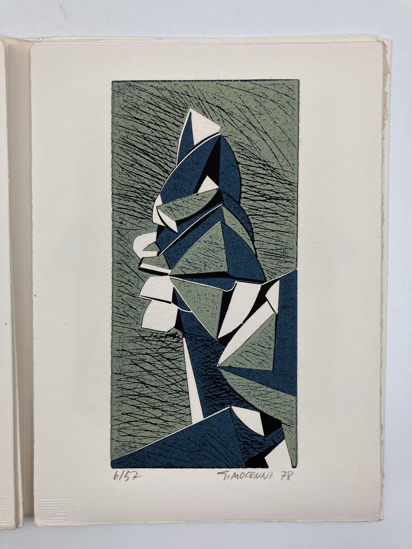 Esemplare n. 6 dei soli 57 stampati, firmato da Roberto Sanesi e dal pittore istriano Gualtiero Mocenni al colophon, e prima edizione del testo di Sanesi. Il libro è impresso su carta Ingres MBM Arches blanc, mentre le xilografie sono eseguite a mano su carta Fabriano