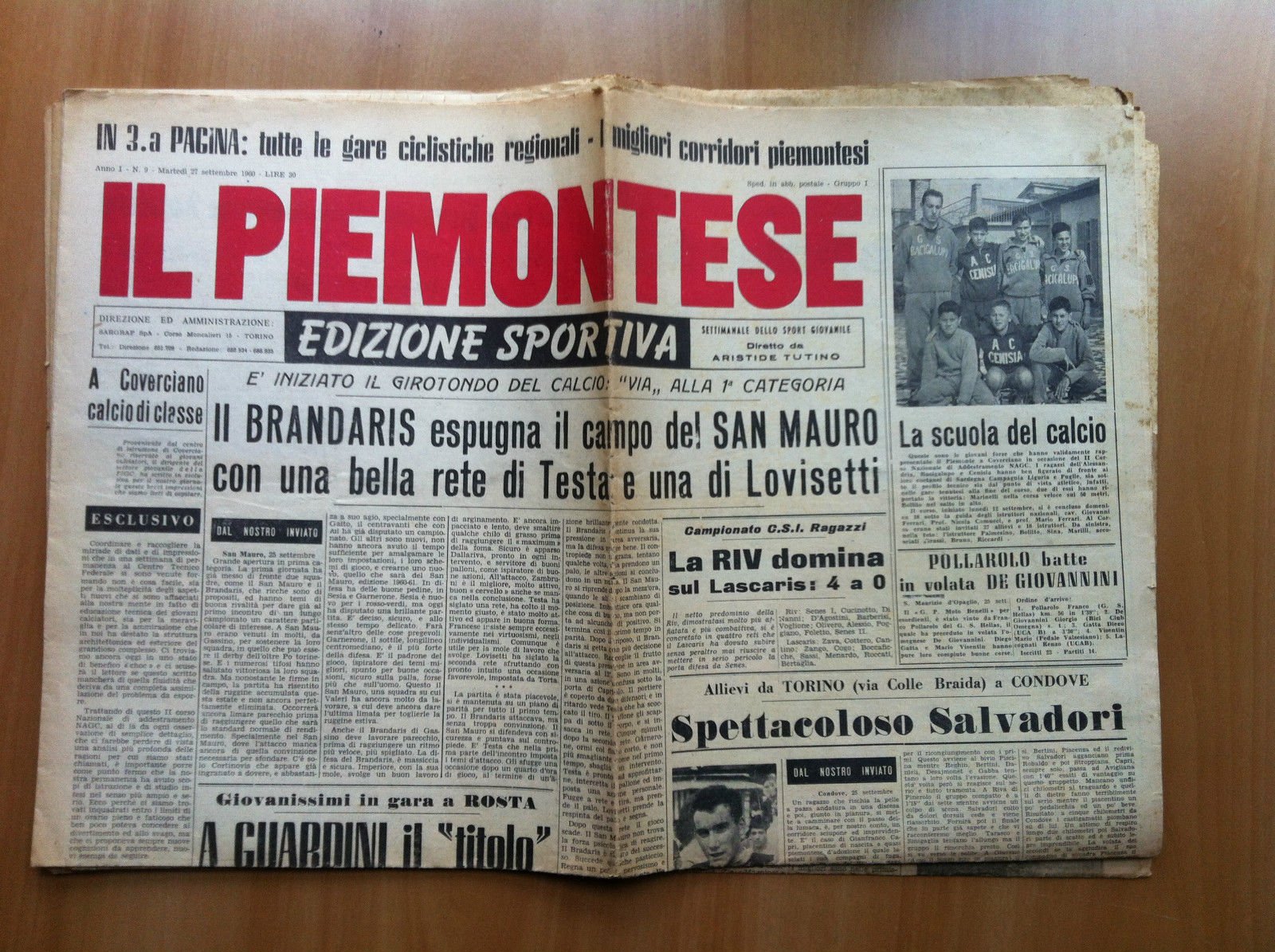 IL PIEMONTESESettimanale dello sport giovanileDiretto da Aristide Tutino4 Pagine - In buone condizioni salvo ritaglio 9,5x7x5 cm in prima pagina in basso (30 g)E15241