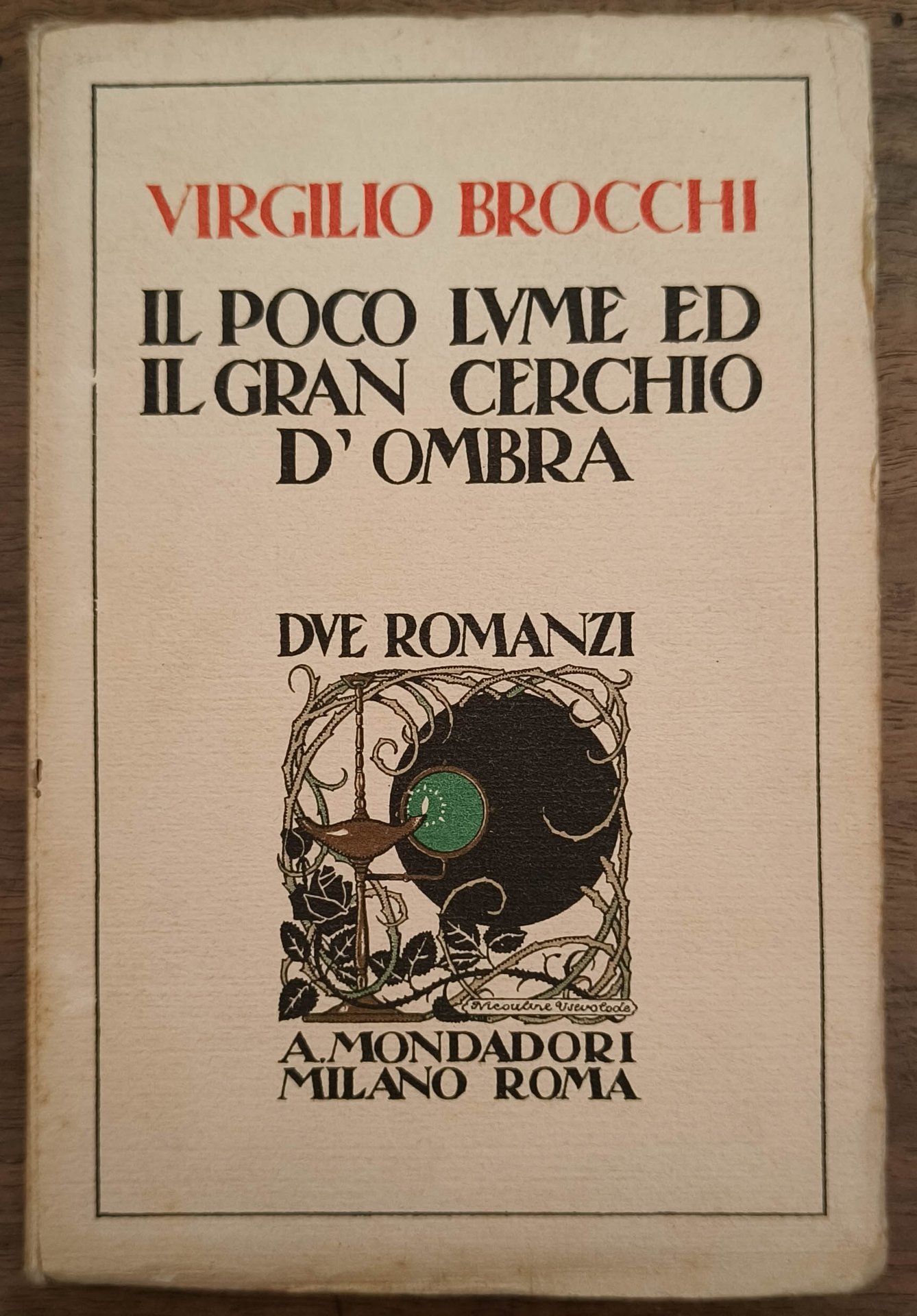 Il poco lume ed il gran cerchio d'ombra. Due romanzi, Milano, Mondadori, 1925. Prima edizione. Cm 18,8. Pp. 215. Brossura editoriale. Dedica autografa dell'autore in parte mutila ad Amerigo Manzini (giornalista e attore).