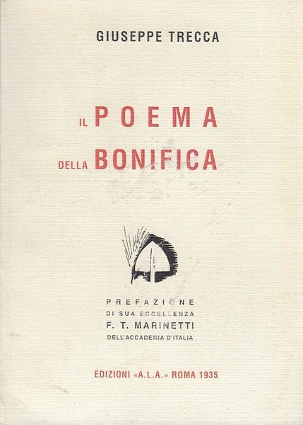 In-8 (Cm 20,3 x 14,5), pp. 119, brossura editoriale. Prefazione di sua eccellenza F.T: Marinetti dell'accademia d'Italia. RISTAMPA in 100 esemplari fuori commercio (nostro numero 37) dell'edizione A.L.A. nel 1935. Nota critica di Roberta Sciarretta. Una lieve abrasione alla brossura anteriore. MOLTO BUONO