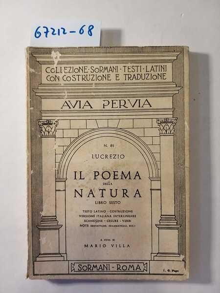 Il poema della natura. Libro sesto. Testo latino - costruzione versione italiana interlineare scansione - cesure- verbi note a cura di Mario Villa