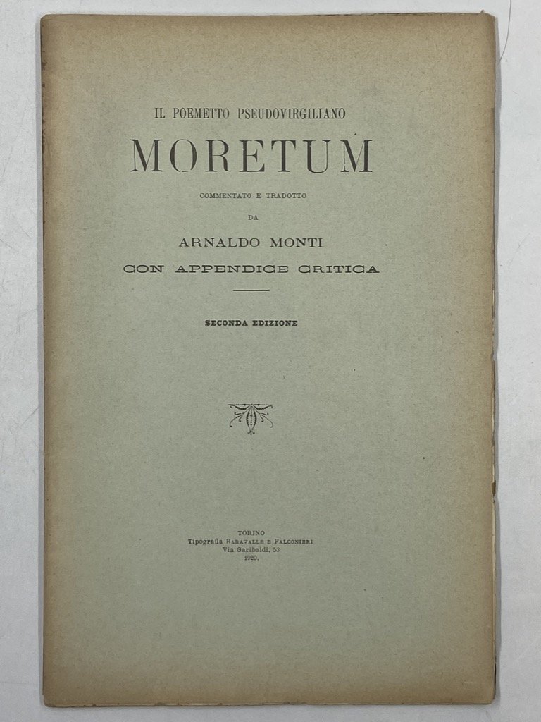IL POEMETTO PSEUDOVIRGILIANO MORETUM COMMENTATO E TRADOTTO DA ARNALDO MONTI CON APPENDICE CRITICA. SECONDA EDIZIONE.