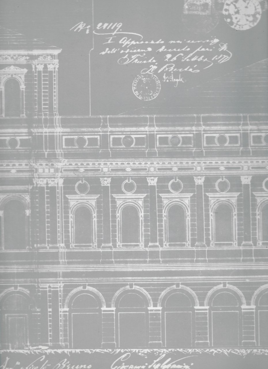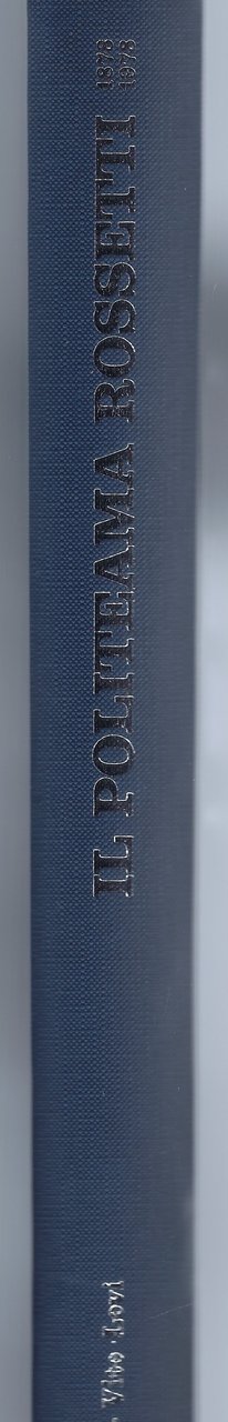Legatura rigida tutta tela blu con titoli in argento al piatto anteriore e al dorso.