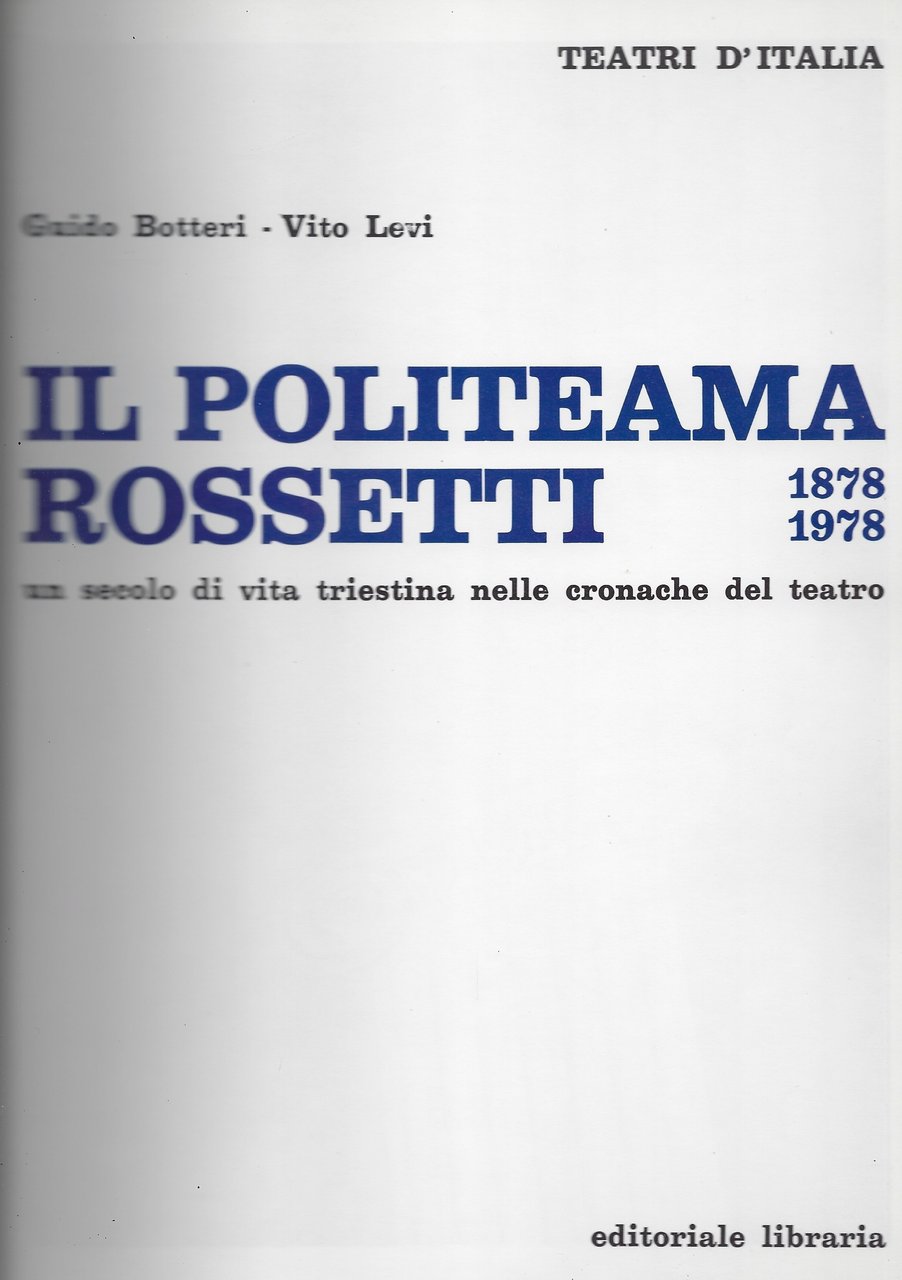 Il Politeama Rossetti 1878-1978 un secolo di vita triestina nelle cronache del Teatro.