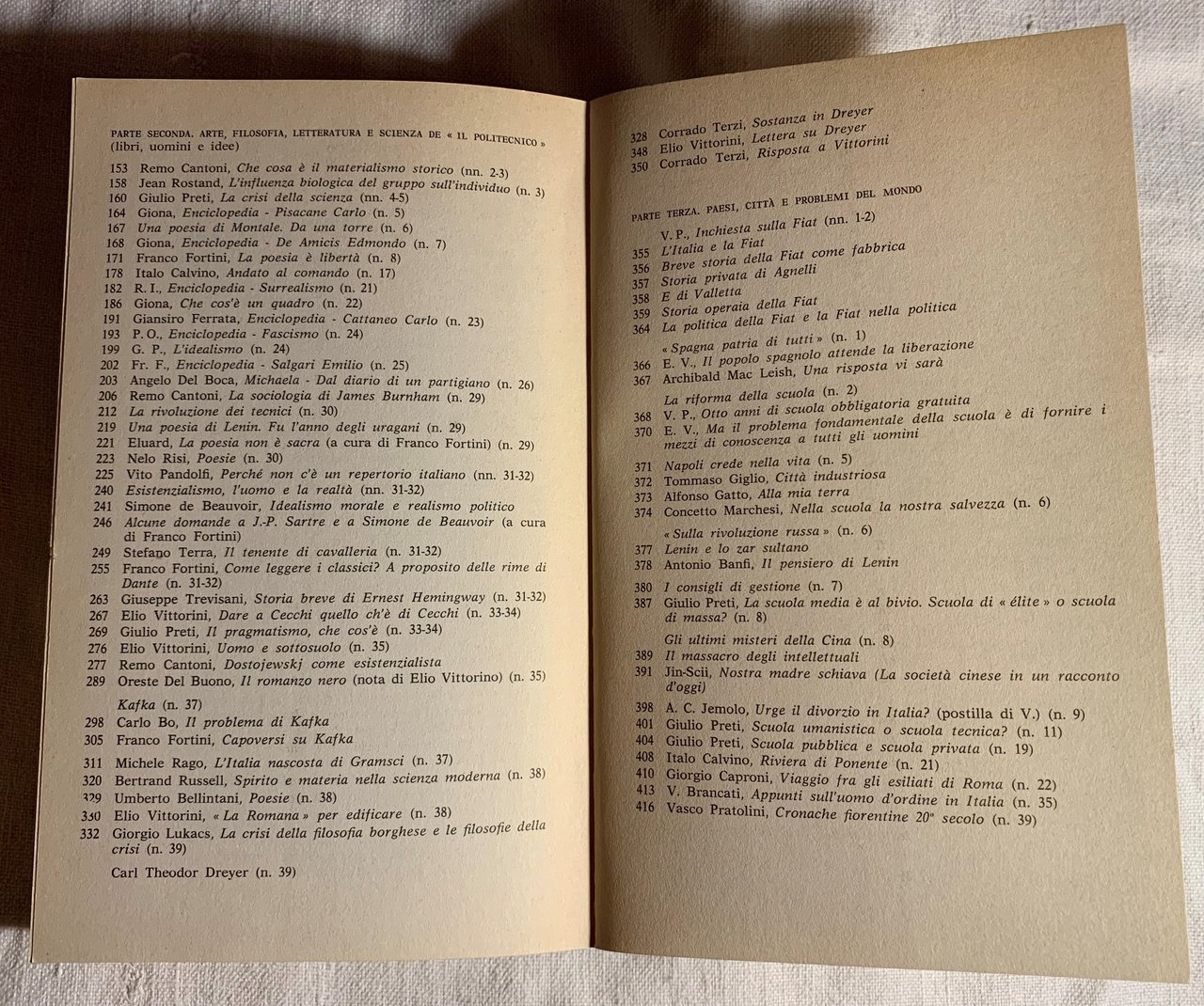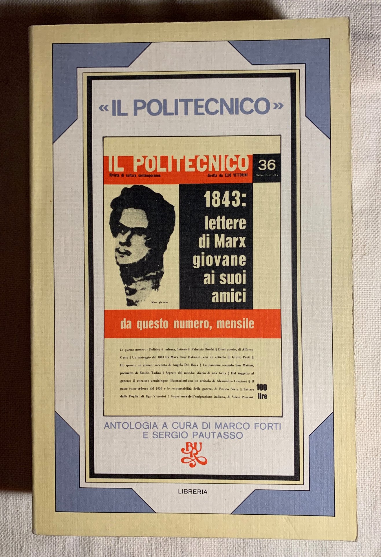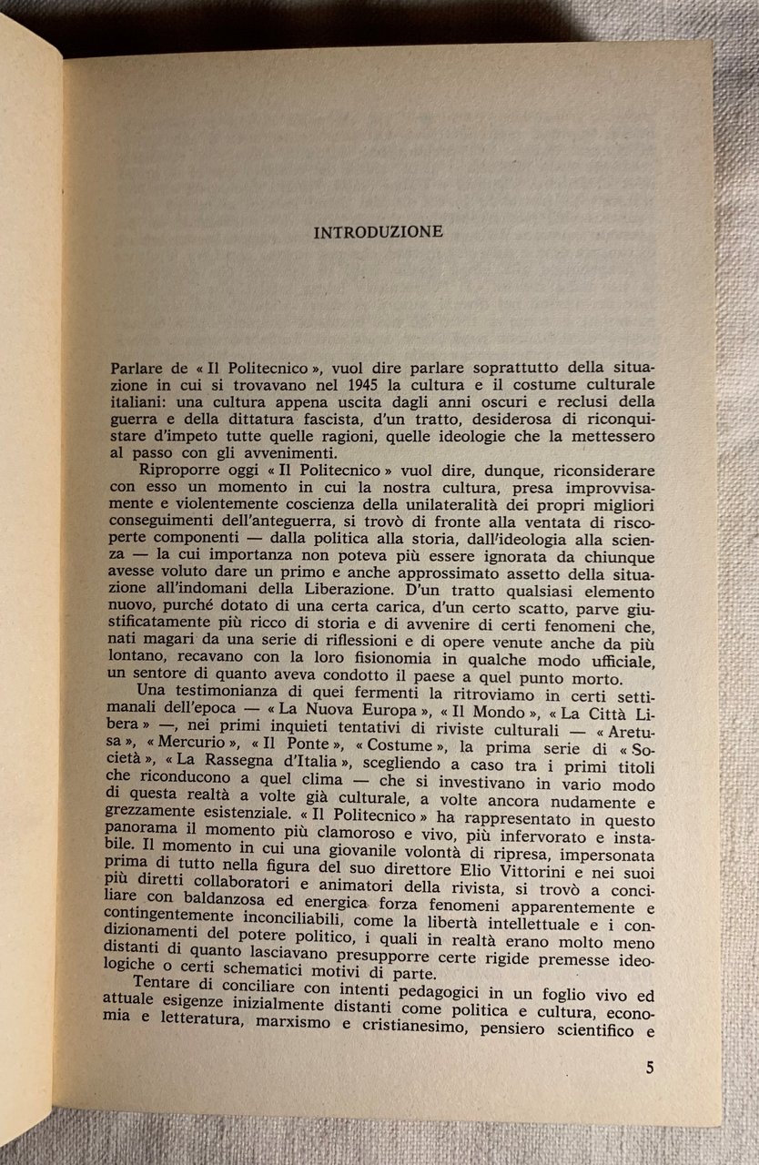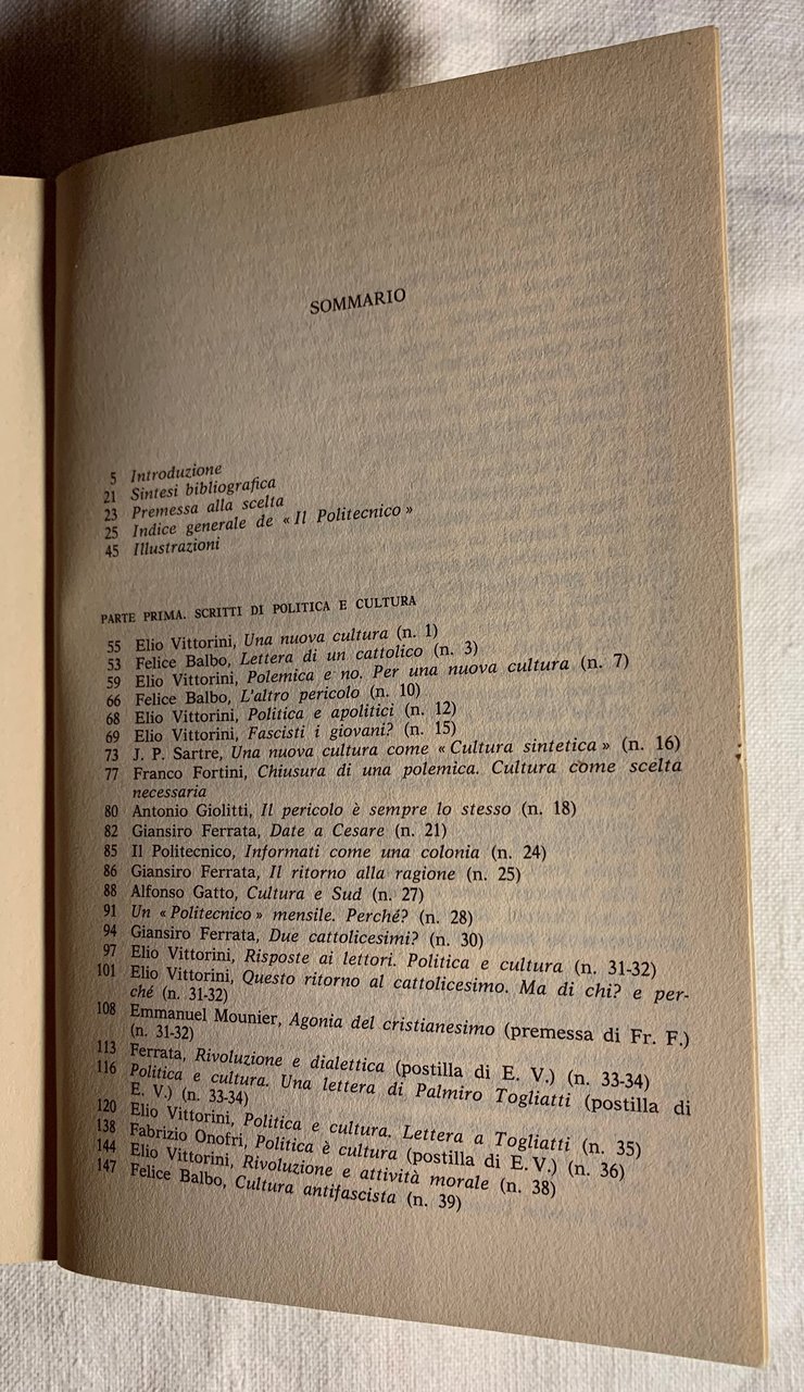 I ed. dell'antologia: aprile 1975 (ma finito di stampare nel marzo 1975). Biblioteca Universale Rizzoli (BUR). VIII/ 432/ brossura (In copertina: la prima pagina del numero 36 de «bIl Politecnico » (settembre 1947). Grafica di John Alcorn). Stato buono (leggera usura della copertina - copertina e pagine brunite).