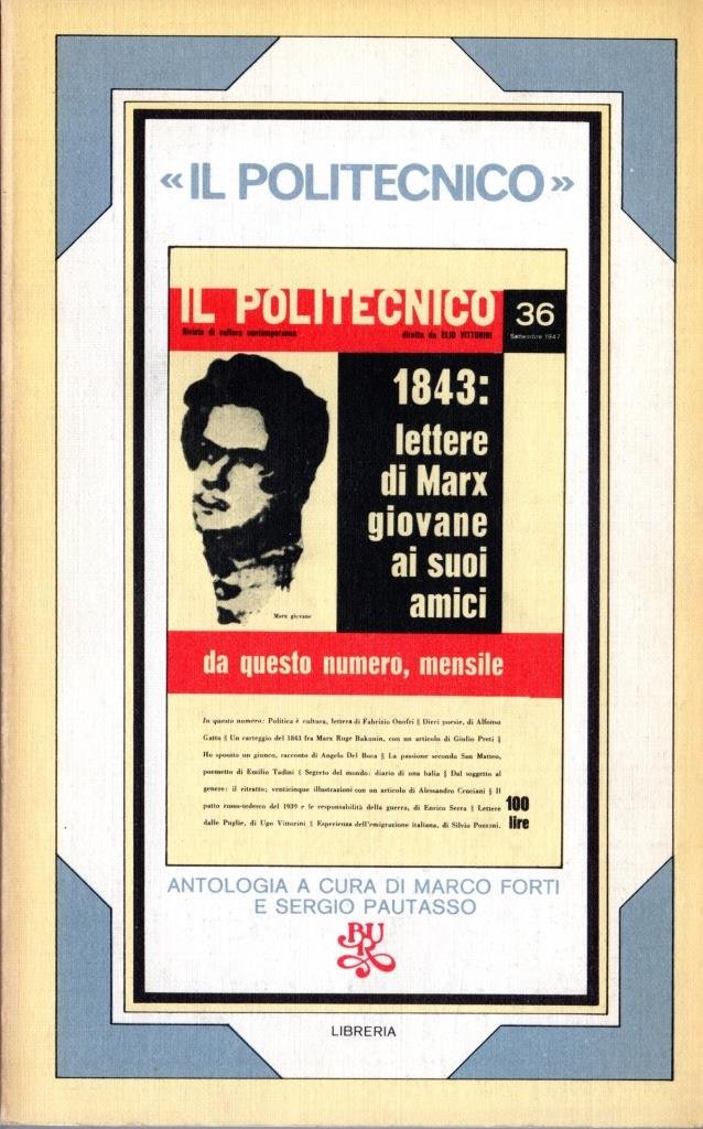 Il Politecnico, prima edizione marzo 1975, pp. 425, formato 13 x 21. Copertina morbida con foto della prima pagina del n. 36 de "Il Politecnico" (settembre 1947). Grafica di John Alcorn.