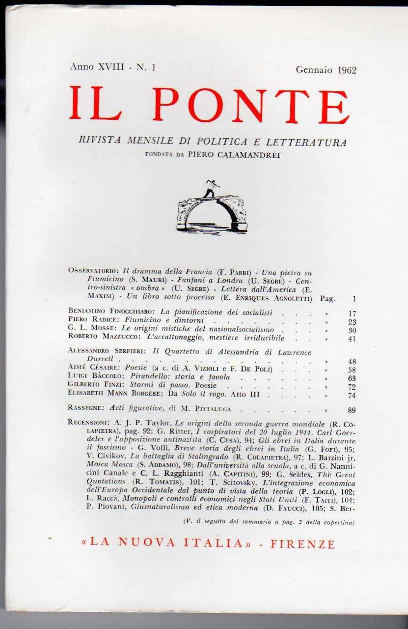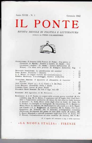 Il Ponte Rivista di dibattito politico e culturale fondata da Pietro Calamandrei - Annata 1962 completa degli 11 fascicoli
