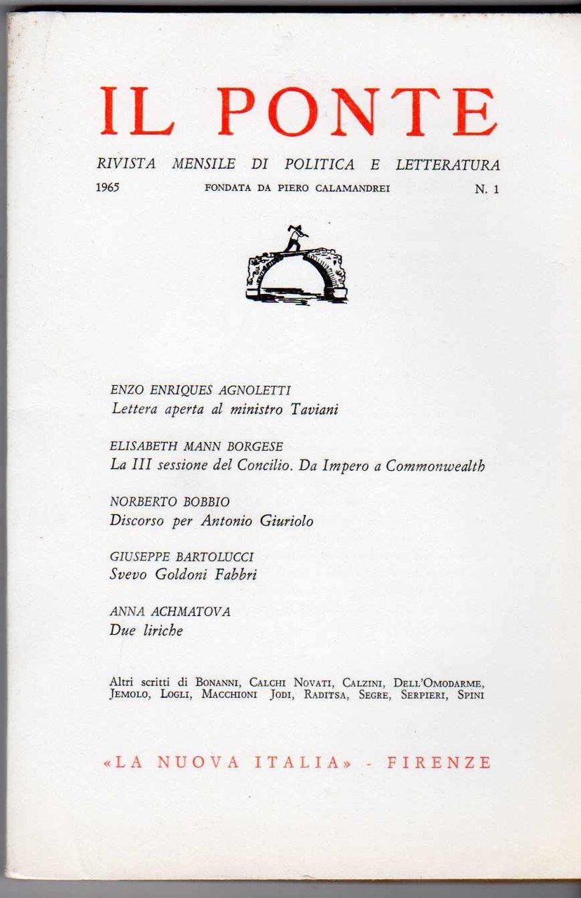 Il Ponte Rivista di dibattito politico e culturale fondata da Pietro Calamandrei - Annata 1965 completa dei 10 fascicoli