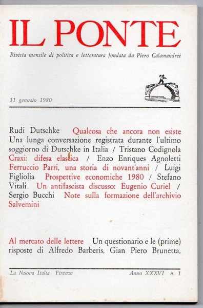 Il Ponte Rivista di dibattito politico e culturale fondata da Pietro Calamandrei - Annata 1980 completa dei 9 fascicoli