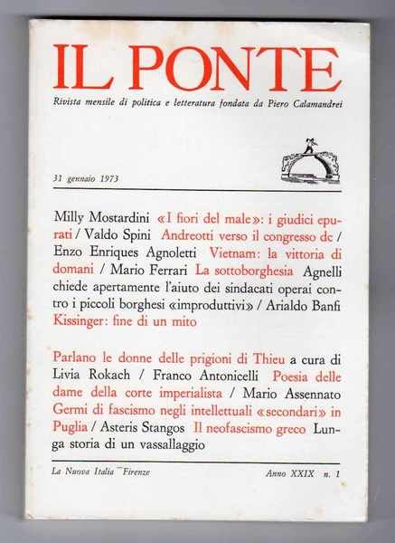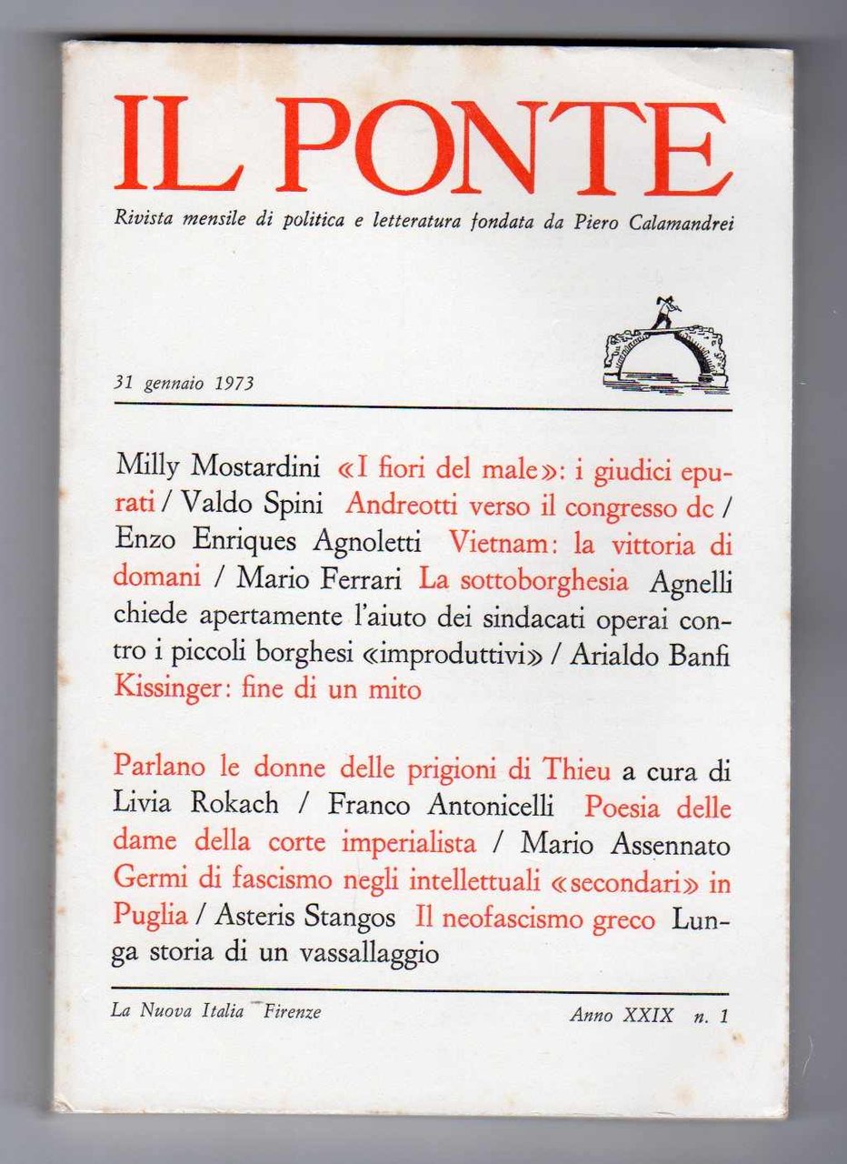 Il Ponte Rivista mensile di politica e letteratura fondata da Pietro Calamandrei - Annata 1973 comprendente n. 9 fascicoli (mancano solo il n. 7/8 luglio/agosto 1973)