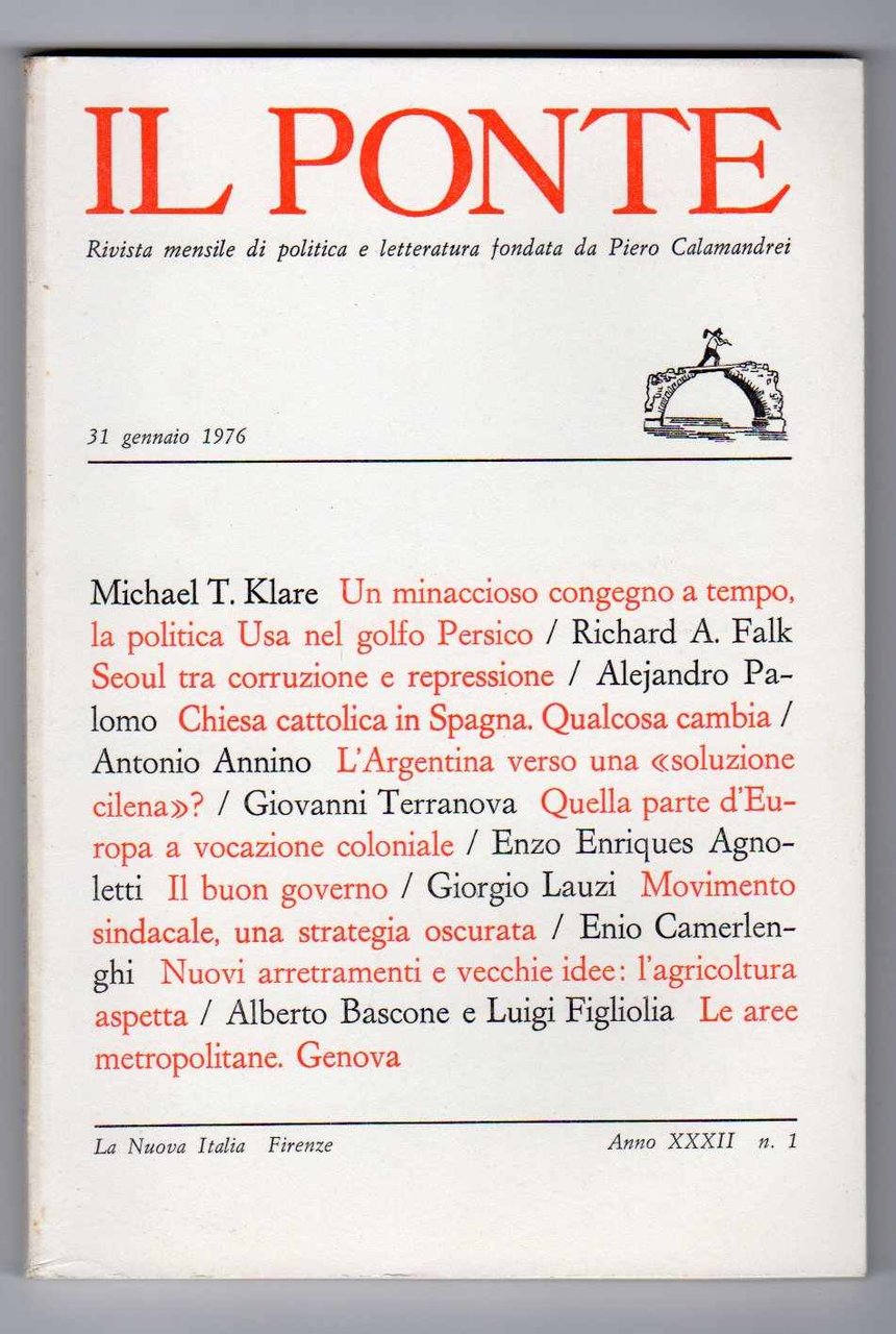 Il Ponte Rivista mensile di politica e letteratura fondata da Pietro Calamandrei - Annata 1976 completa dei 9 fascicoli