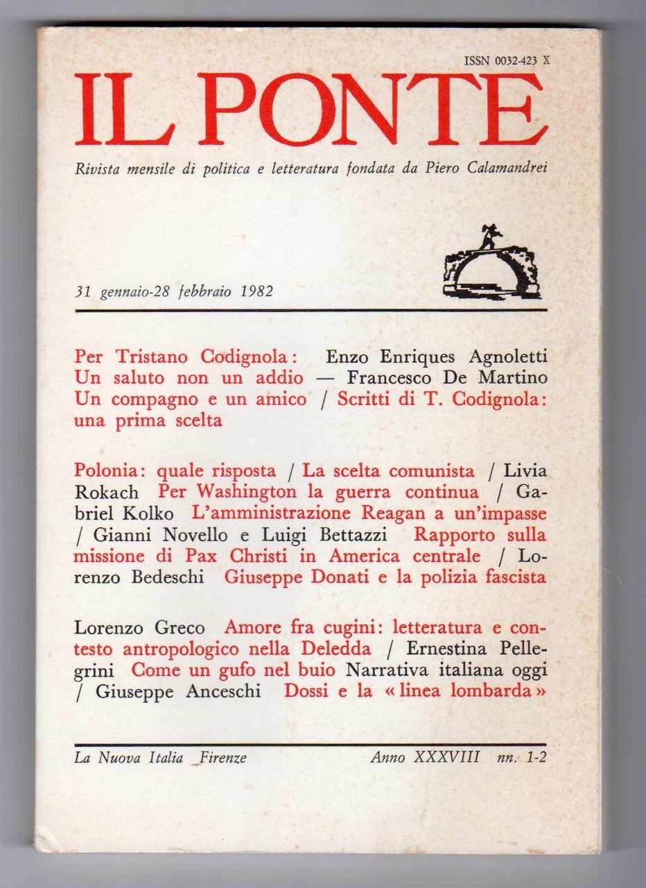 Il Ponte Rivista mensile di politica e letteratura fondata da Pietro Calamandrei - Annata 1982 comprendente n. 8 fascicoli (manca solo il n. 10 di ottobre 1982