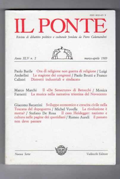 Il Ponte Rivista mensile di politica e letteratura fondata da Pietro Calamandrei - Annata 1989 comprendente n. 3 fascicoli n. 1, n. 2 e n. 3/4