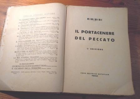 Firenze, casa editrice Bataclan. Prima edizione, br. ed. ill. in 8°, pp. 207 + (17) di giudizi della critica sul romanzo. Gli 11 capitoli sono intitolati ad altrettante "sigarette". Una firma a matita rossa alla prima carta. Retro di copertina con fioriture e alone di gora, interno buono.