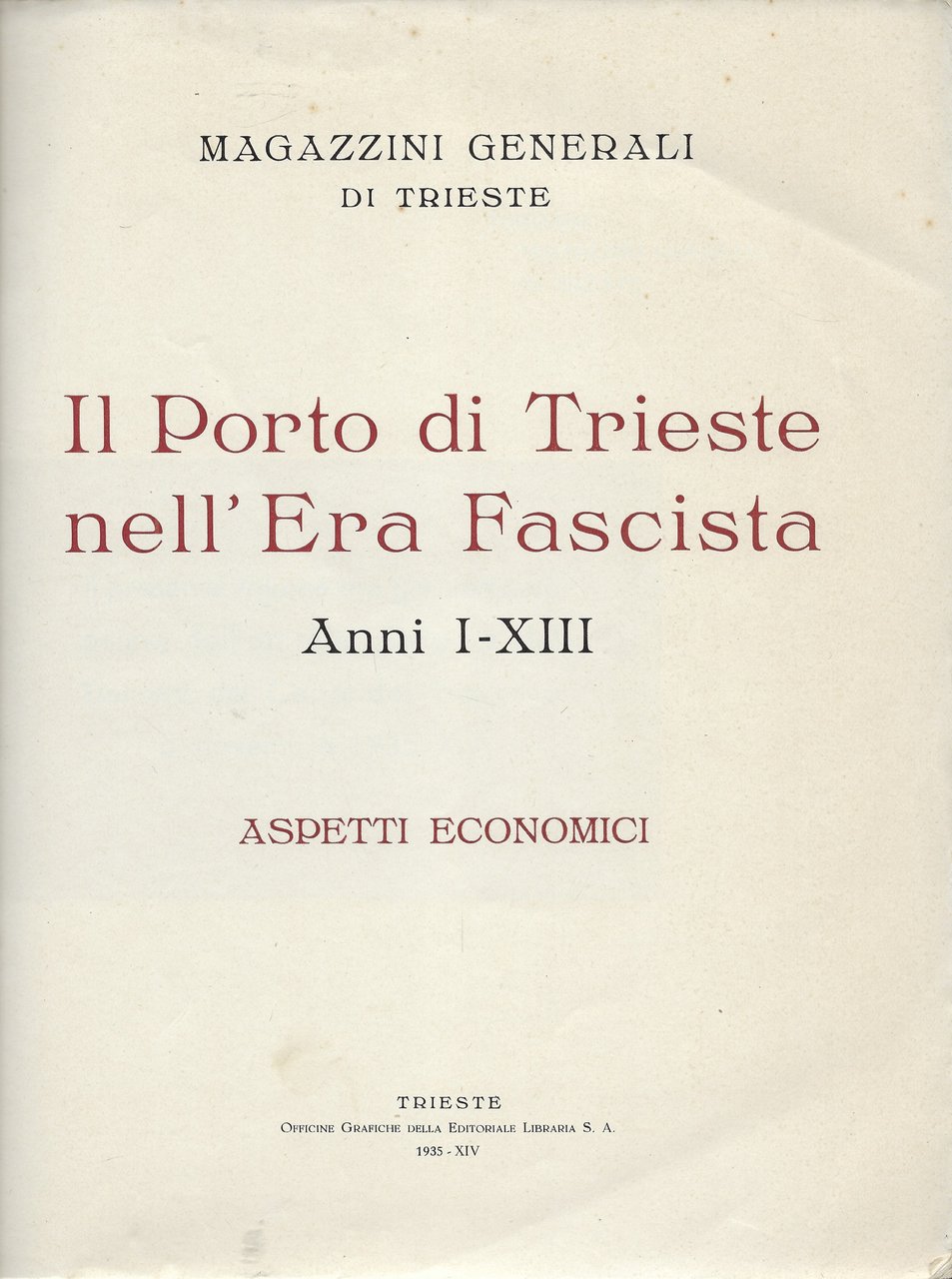 "Il Porto di Trieste nell'Era Fascista". Anni I-XIII. Aspetti Economici