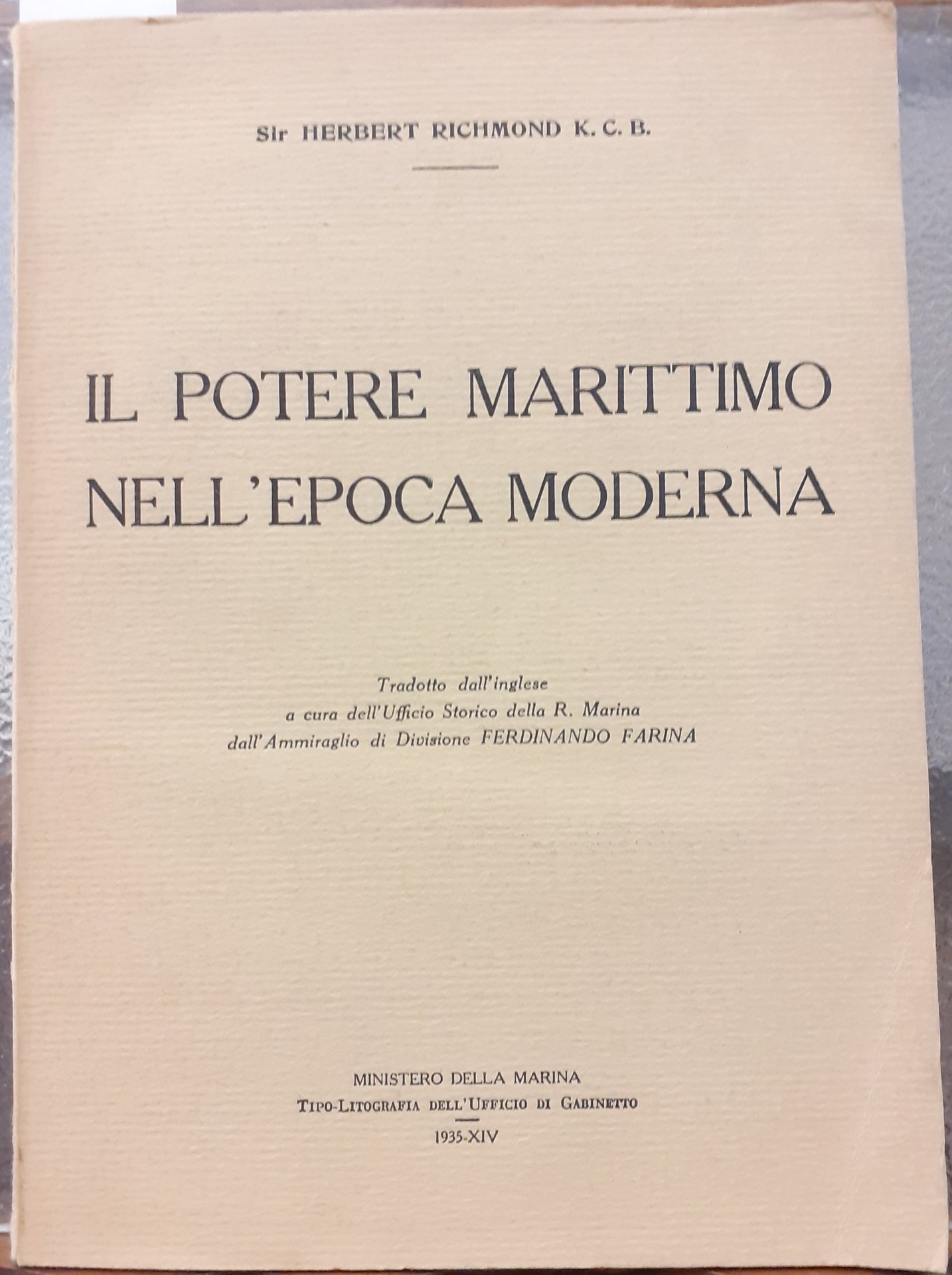 IL POTERE MARITTIMO NELL'EPOCA MODERNA., A cura dell' Ufficio Storico della R. Marina dall' Ammiraglio di Divisione FERDINANDO FARINA.