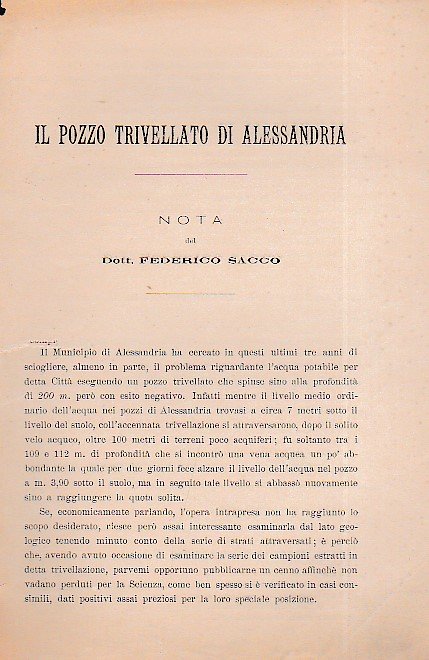 Il pozzo trivellato di Alessandria. Nota