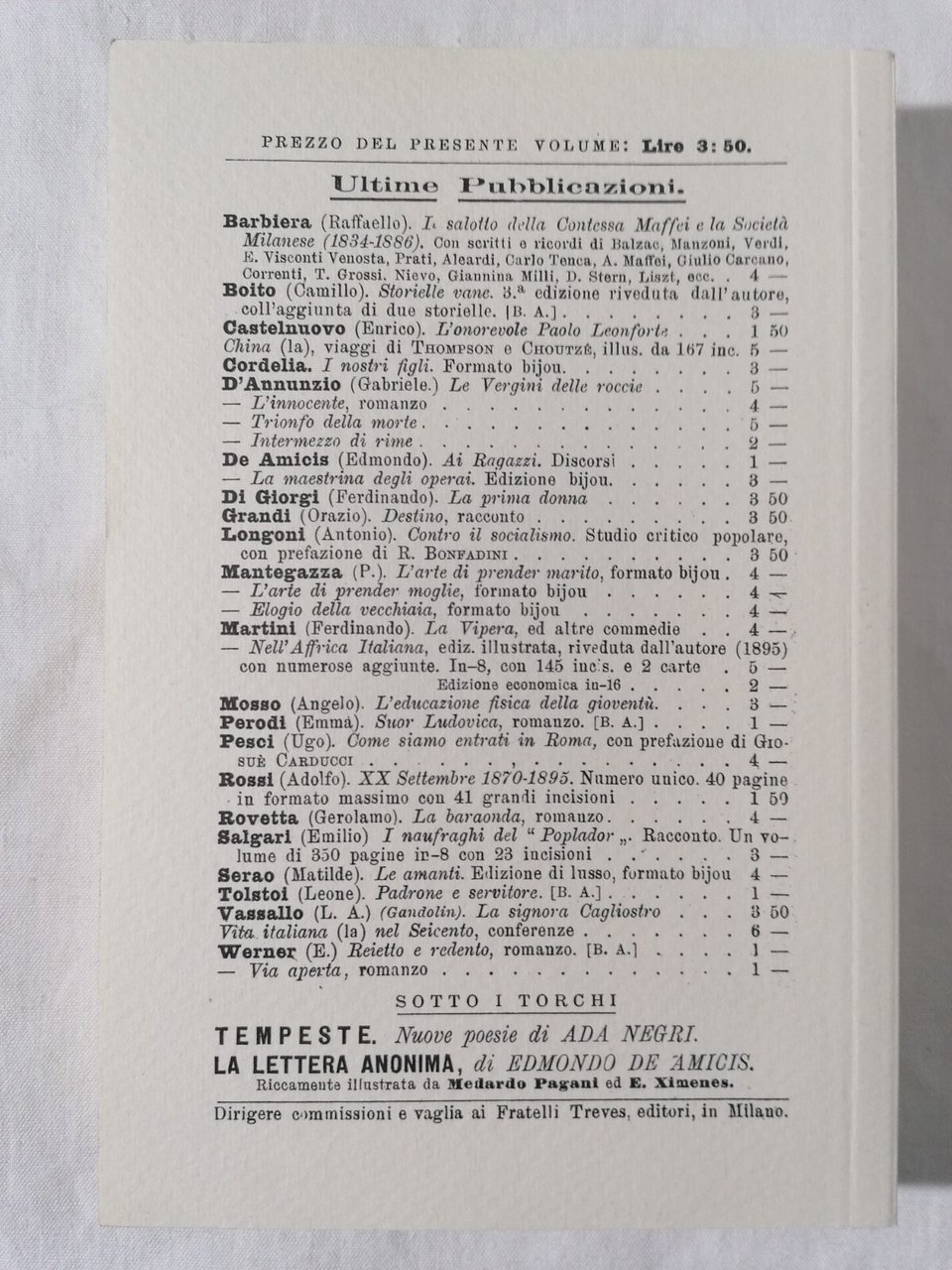 Editore: Fratelli Treves Edizione: Anastatica del 1896 Anno: 2008 N. volumi: 1 N. pagine: VIII+353+(3) Formato: 12,5x19 cm ca. Lingua: Italiano Copertina: brossura editoriale Condizioni: come nuovo Peso: 235g 1D-5-1