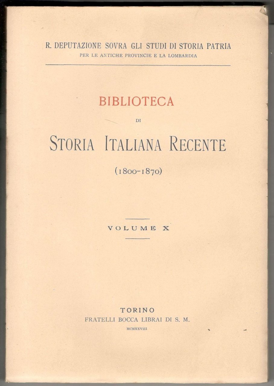 In 8°, pp. 411, (1). Brossura editoriale a stampa. Qualche rara ingiallitura. Copia in ottimo stato, interamente a fogli chiusi. Pubblicazione della Regia Deputazione sovra gli studi di Storia Patria.