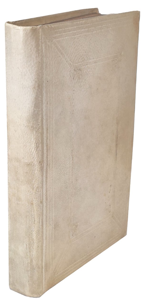 Due opere in un volume in 8vo (mm. 144x90). I: Cc. 80. Segnatura: A-K8. Marca tipografica al titolo ed in fine; II: Cc. 96, [4]. Segnatura: A-M8 A4. Marca tipografica al titolo. . Legatura moderna in pergamena rigida. Gore al margine interno del volum, più forti alle prime ed alle ultime carte, segni di tarlo restaurati senza danno al testo, margini corti.