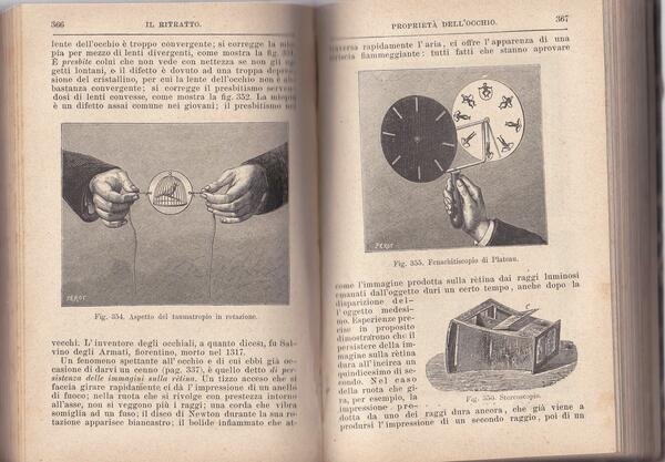 In-8°, pp. XI, 620, 567 incisioni nel testo, legatura in mezza tela muta. Quarta edizione riveduta e ampliata dall'autore coll'aggiunta della machina di Gramme, o Paccinotti, del telefono, del fotofono, ecc.
