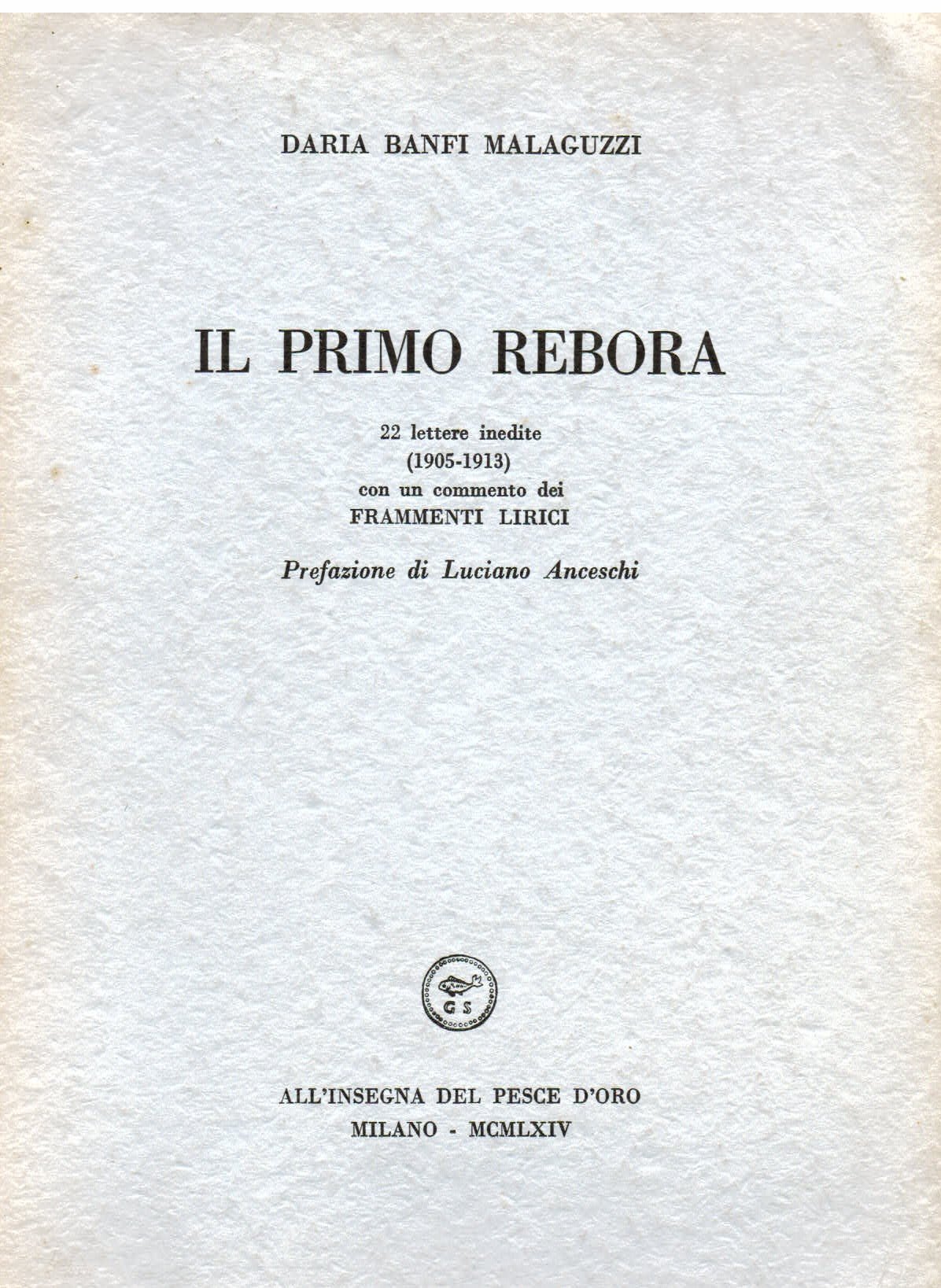 Il primo Rebora. 22 lettere inedite (1905 - 1913) con un commenro dei Frammenti lirici. Prefazione di Luciano Anceschi