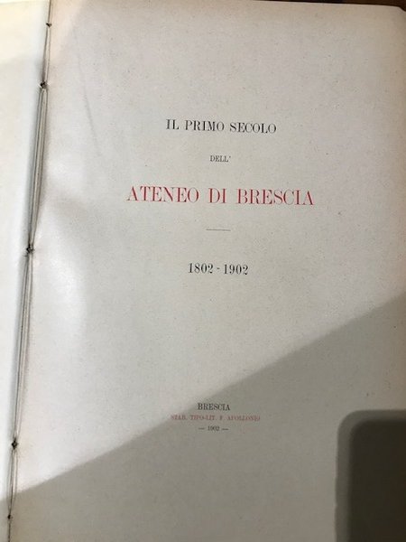 Il primo secolo dell'Ateneo di Brescia 1802-1902