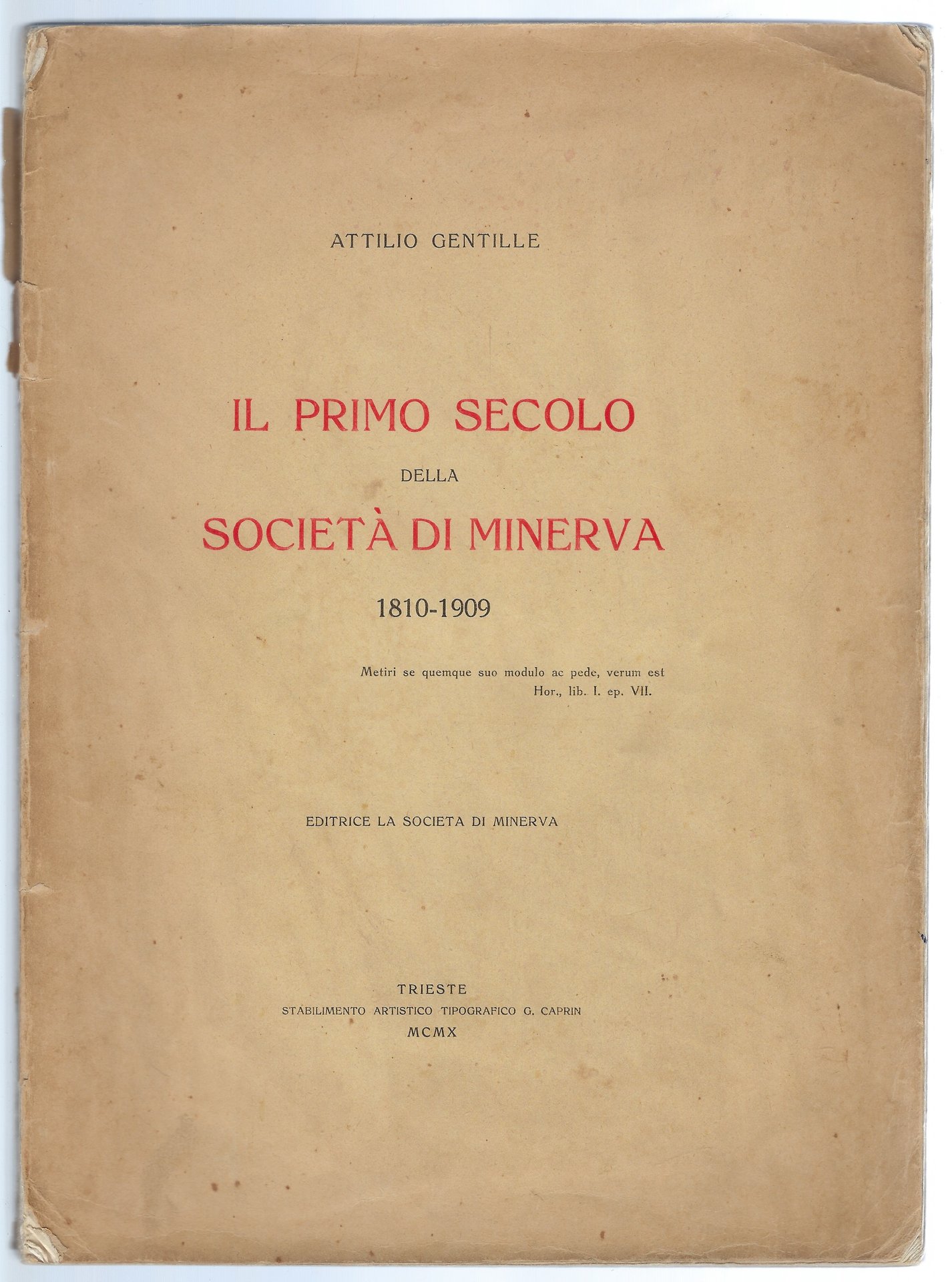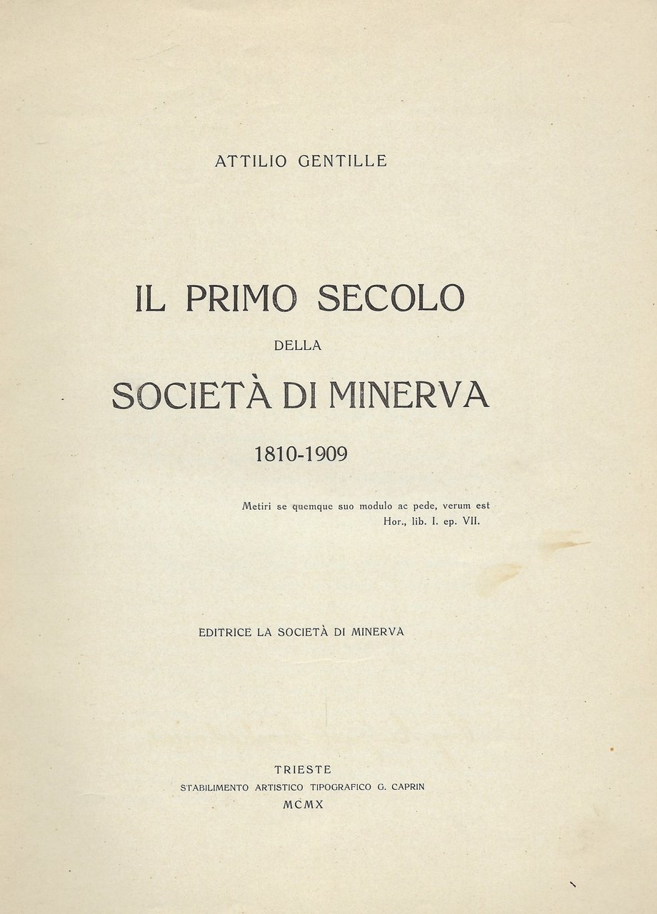 Il primo secolo della società di Minerva 1810-1909