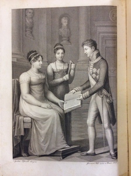 In-8 gr. (mm. 272x192), p. pelle bazana coeva, elegante cornice floreale dorata ai piatti, decoraz. e titolo oro su due tasselli al dorso, pp. XXIV,472, con una bella tavola, disegnata da Agostino Tofanelli ed incisa in rame da Giovanni Folo, in cui è raffigurato Carlo II che presenta il libro a sua madre Maria Luisa di Borbone, Duchessa di Lucca, cui è dedicata l'opera; il volume è illustrato da 80 pregevoli vignette (inc. in rame da G. Mochetti) che raffigurano emblemi, ciascuna posta all'inizio di altrettanti Documenti. Il gesuita Andrea Mendo (1608-1684) compose l'opera per dare buoni consigli al Principe' (Filippo IV) in merito al buon governo, alla politica, alla diplomazia, ecc., sulla scia del Machiavelli. "Prima edizione della traduzione italiana", effettuata da Carlo Luigi di Borbone.Cfr. Palau,V, p. 151 che cita le numerose ediz. (a partire dalla prima di Leon de Francia, 1642), inclusa la versione in italiano - Praz Studies in XVII century imaginery, p. 420 - De Backer,II, p. 406.Alone al margine bianco della tavola con i ritratti; qualche lieviss. fiorit., altrimenti esemplare ben conservato, su carta forte.
