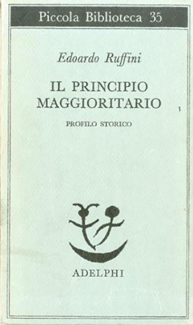 139 p. ; 18 x 11 cm. Piccola biblioteca Adelphi, 35. Molto si parla di democrazia, ma troppo poco si sa della sua storia. Questo acutissimo saggio, dovuto a uno dei maggiori storici del diritto, ripercorre le vicende di due nozioni capitali della democrazia: l’elezione a maggioranza e il dissenso. Partendo dalle formulazioni di Aristotele e del diritto romano, soffermandosi poi sulle soluzioni della Chiesa cristiana dei primi secoli e sull’apporto delle civiltà barbariche, per giungere infine ai diversi sistemi sperimentati negli Stati moderni, dall’Inghilterra alla Svizzera, dalla Polonia agli Stati Uniti, Ruffini ci mostra, in un’esposizione limpidissima e straordinariamente lucida, come il «principio maggioritario» e la valutazione del dissenso possano assumere cento volti dissimili a seconda della situazione storica in cui compaiono e come nelle loro trasformazioni si rispecchino i principali problemi teorici e pratici di ogni democrazia, problemi che anche per noi sono del tutto aperti. Pubblicato nel 1927 in pieno fascismo (e da uno dei pochissimi professori universitari che rifiutarono di giurare fedeltà al regime), questo piccolo libro è un classico che deve ancora essere scoperto. Attuale oggi più che mai, aspetta dunque in certo modo di trovare i suoi lettori con questa edizione, riveduta dall’autore nella forma e arricchita di due postille sull’ONU e sul nuovo diritto di famiglia italiano. In appendice: «Cinquant'anni di ritardo» di Severino Caprioli. Brossura editoriale, coperta in cartoncino flessibile di colore grigio con alette. Codice libreria 8864.