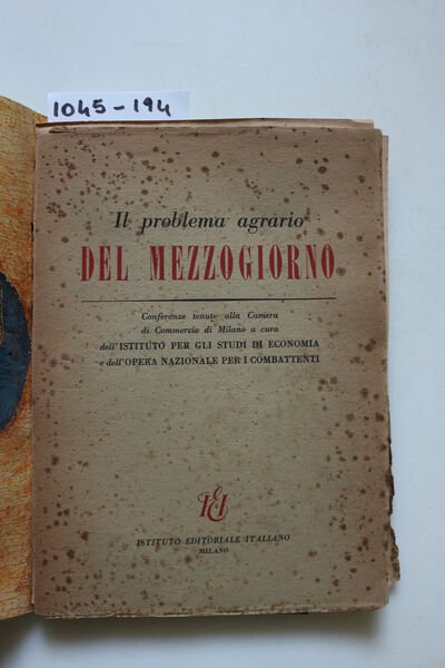 Conferenze tenute alla Camera di Commercio di Milano a cura dell'Istituto per gli Studi di Economia e dell'Opera Nazionale per i Combattenti - DETTAGLIO DELLE CONDIZIONI : La coperta, gravemente danneggita, è staccata dal corpo del volume -presenza di fioriture - (1.XX.4).