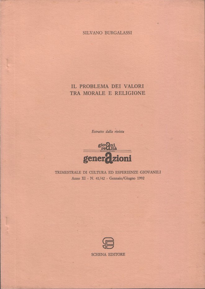 In-8°, pp. da 43 a 60, copertina editoriale. In buono stato. Estratto. Sommario: !. Premessa; 2. Il concetto di valore; 3. Le caratteristiche essenziali del valore; 4. Le nostre indagini sulla sfera morale cattolica.