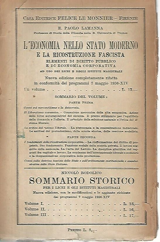 Copertina: in brossura, con segni d'usura ai margini, sporca lievemente. Taglio: irregolare in modo lieve. Pagine testo: ingiallite, brunite ai margini. Copertina staccata dalla paginazione. Interno in ottime condizioni. Mediocre (Poor) .