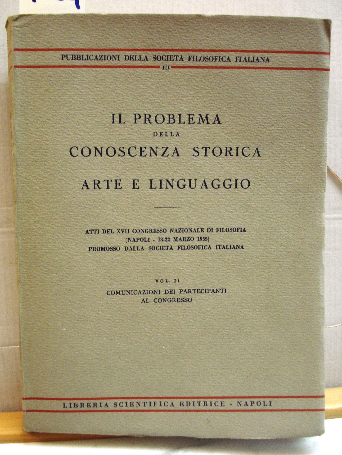 IL PROBLEMA DELLA CONOSCENZA STORICA ARTE E LINGUAGGIO. Atti del XVII Congresso Nazionale di Filosofia (Napoli 18-22 Marzo 1955) promosso dalla Società Filosofica Italiana., Vol. II., COMUNICAZIONI DEI PARTECIPANTI AL CONGRESSO.